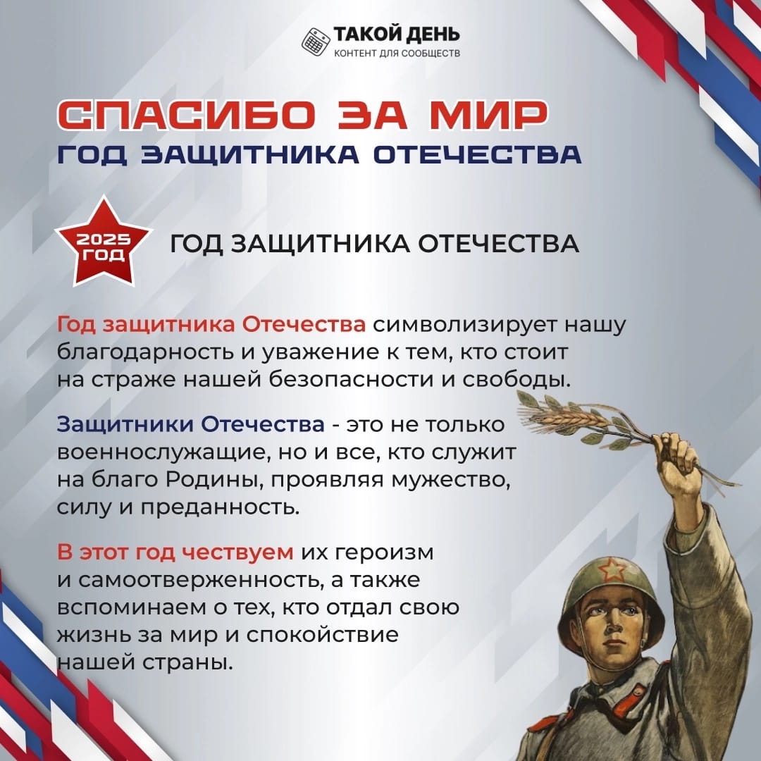 Этот год символизирует нашу благодарность и уважением к тем, кто стоял и стоит на страже нашей Родины.